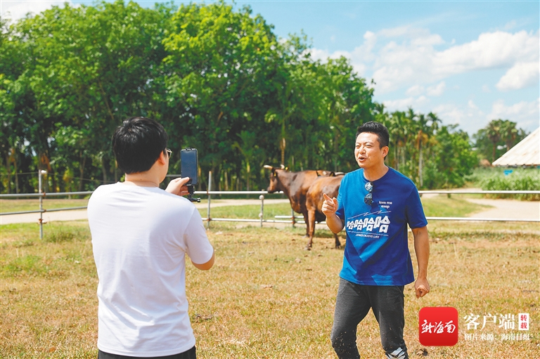 抖音達人“瓊斯愛生活”在海墾和牛文儒牧場做直播。