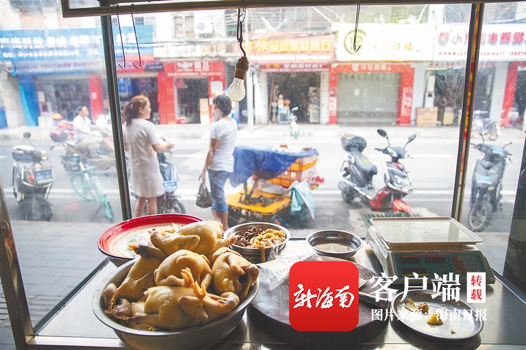 熙熙攘攘的新華南路,曾經(jīng)是老海口的市中心。在這里生活的居民老蔡是地道的“老海口”,不想做飯的中午,到這條路上的肥婆蘭雞飯店,點上一份白斬雞、一碟小菜,再配上一碗雞油飯,就是最“順口”的午餐。