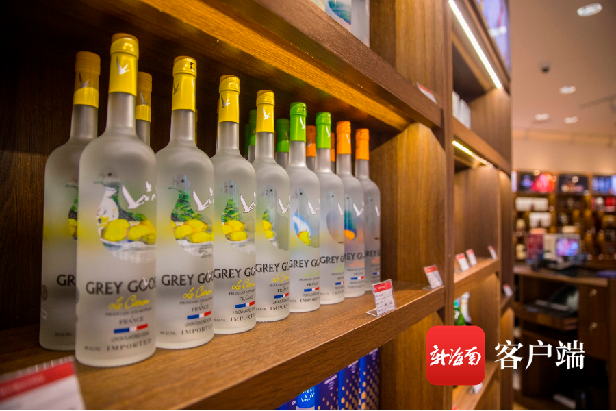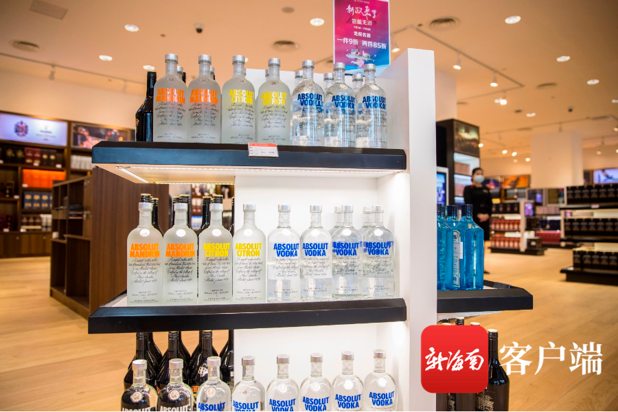 海口日月廣場免稅店,售賣的免稅酒水琳瑯滿目。記者 劉洋攝