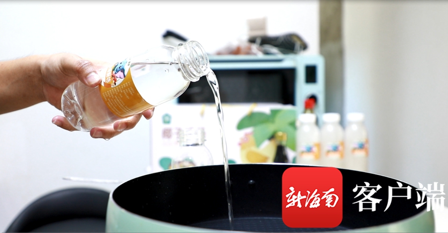 將解凍后的椰子水倒入鍋中。記者 吳興財 攝