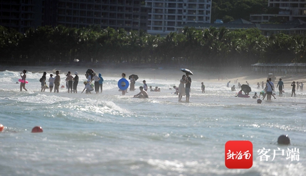 游客在三亞的海灘上游玩。記者 沙曉峰 攝