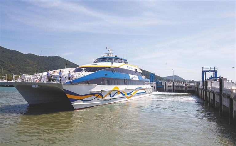 三亞海上巴士“海琨”輪駛離客運碼頭。海南日報記者 武威 攝
