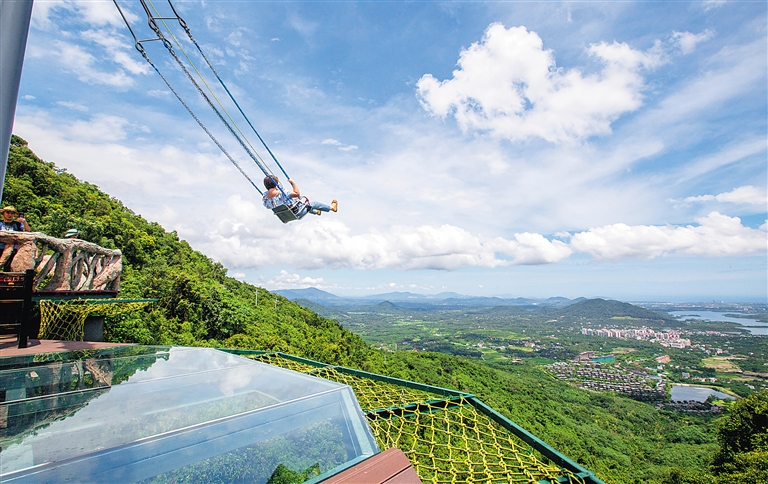 游客在海南呀諾達雨林文化旅游區體驗懸崖觀海秋千。海南日報記者 武威 攝