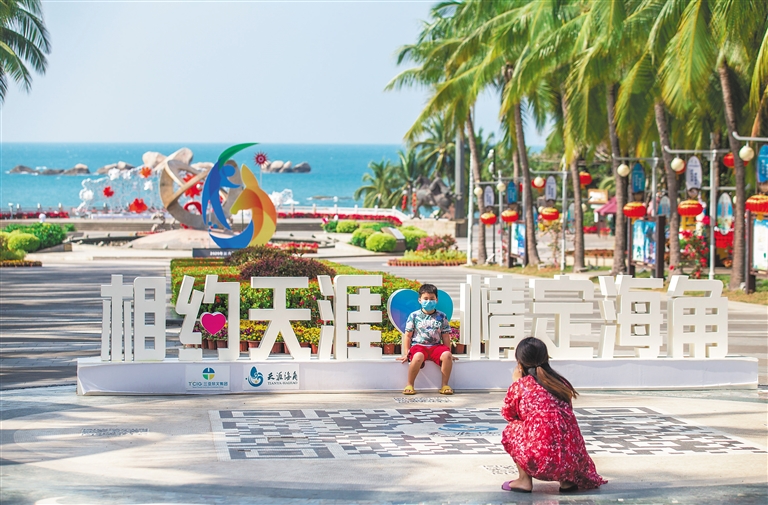 游客在三亞天涯海角景區游玩并拍照留念。海南日報 武昊 供圖