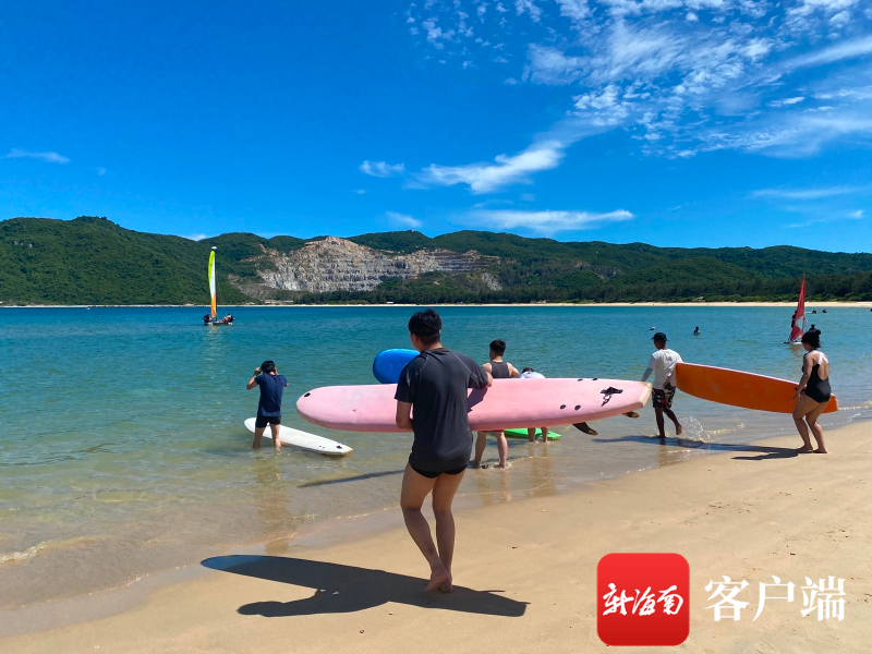 來自江西的羅澄在游記中看到了三亞后海,之后便來旅游。“來到這邊看到很多沖浪俱樂部,所以就報了體驗課。”羅澄說,一節(jié)體驗課下來,她感覺沖浪非常好玩。“以前沒接觸過,還挺好玩的,以后應(yīng)該會經(jīng)常來這邊玩這項運(yùn)動。”