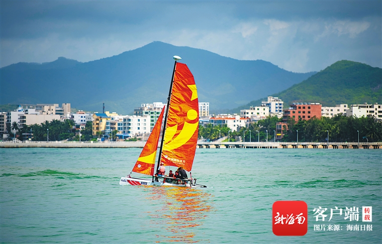 游客在三亞乘坐帆船游玩。 海南日?qǐng)?bào)記者 袁琛 攝