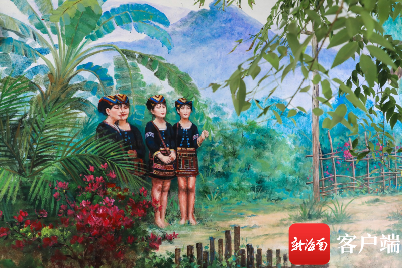三派村民宅景觀,將墻繪藝術(shù)與當(dāng)?shù)刈匀弧⑷宋沫h(huán)境、黎鄉(xiāng)故事相互結(jié)合,打造了“流動(dòng)的黎族文化博物館”。記者 姚皓 攝