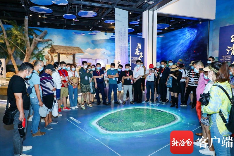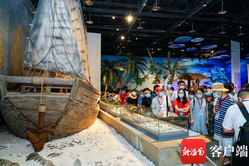 7月26日上午,“天然氧吧 健康海南”——2020全國抗疫英雄海南行暨海南自由貿易港全國重點網媒推介活動的抗疫英雄和媒體記者們走進中國(海南)南海博物館。記者 李昊 攝