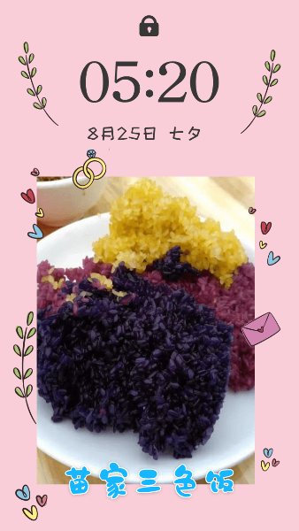 三色飯色相鮮美滑嫩,與平常看到的糯米飯并無多大區別,但工序繁多,且用時較長。