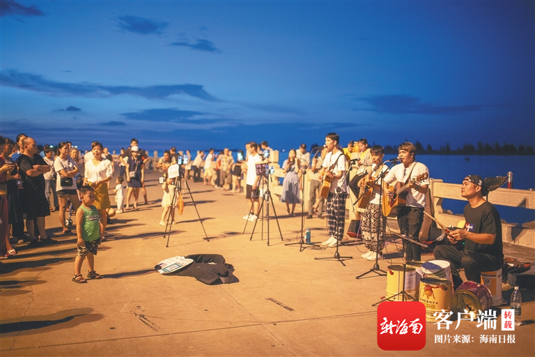 音樂(lè)舞蹈愛(ài)好者們匯聚海口灣,為市民獻(xiàn)藝,成為一道獨(dú)特的風(fēng)景線。
