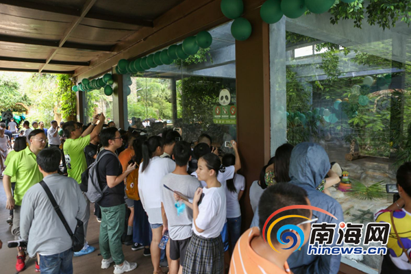 2019年8月18日,海南熱帶野生動(dòng)植物園為大熊貓貢貢、舜舜兄弟舉辦6歲生日活動(dòng)暨海野國際貓粉日吸引大批游客前來助興。南海網(wǎng)記者孫令正 攝