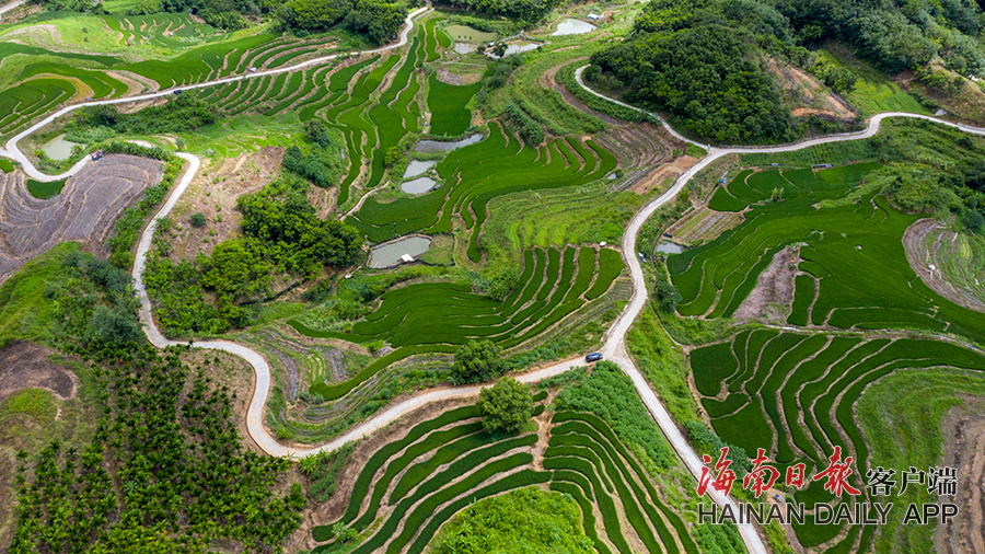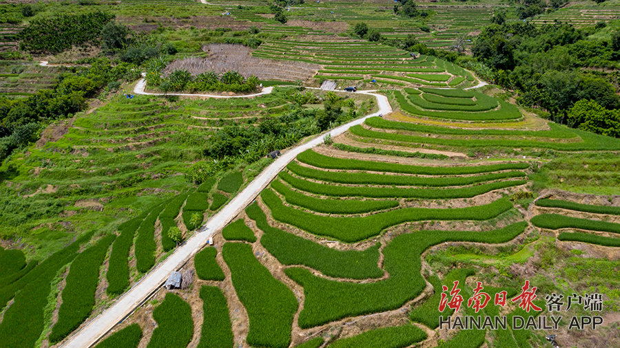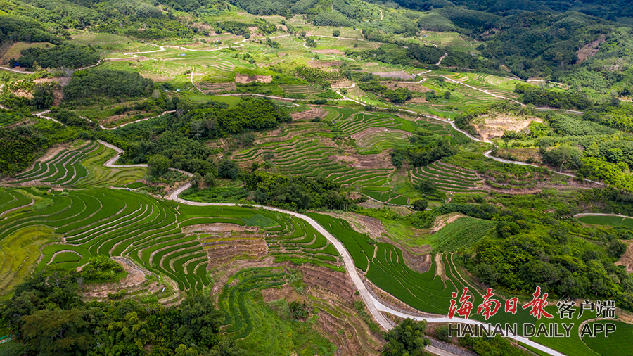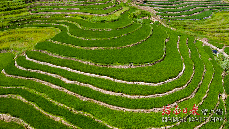 9月22日,五指山市毛陽鎮牙胡村的層層梯田綠意盎然。