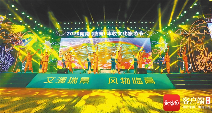 當晚20時, 頗具特色的舞蹈《耕海牧漁大豐收》拉開了2020年臨高農民豐收節晚會的帷幕。晚會分為《大美臨高》《豐收臨高》《幸福臨高》三個篇章,共有11個精彩紛呈的節目輪番上演。原創沙畫《風物臨高》、歌舞《豐收哩哩美》、經典人偶戲選段、說唱《臨高味道》、小品《懶漢脫貧》、快板《萬眾一心加油干》等精彩節目讓現場觀眾贊不絕口。晚會既向嘉賓與觀眾充分展示臨高的自然風光、人文歷史與發展變化,同時呈現了臨高人民良好的精神風貌和對美好生活的追求、愿景。