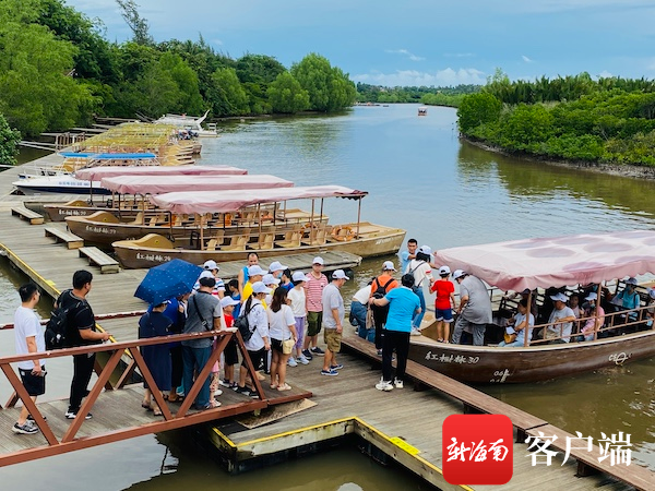 位于海口與文昌交界處的海口紅樹林鄉村旅游區,也是周邊游的熱門目的地。環境優美、風光旖旎,吸引不少本地居民自駕前來。
