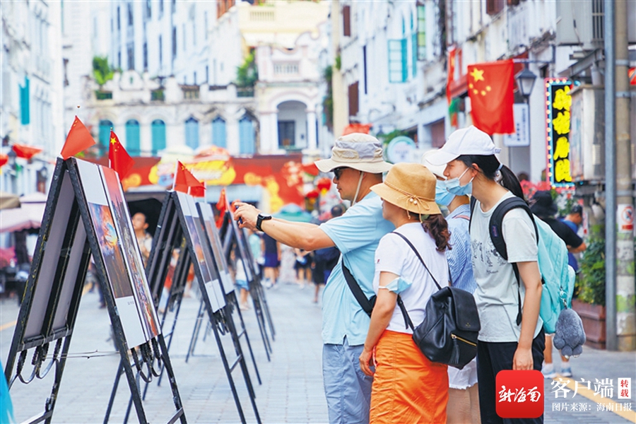 10月4日,游客在海口騎樓老街觀賞2020海南自貿港旅游攝影大賽作品展。海南日報記者 封爍 攝