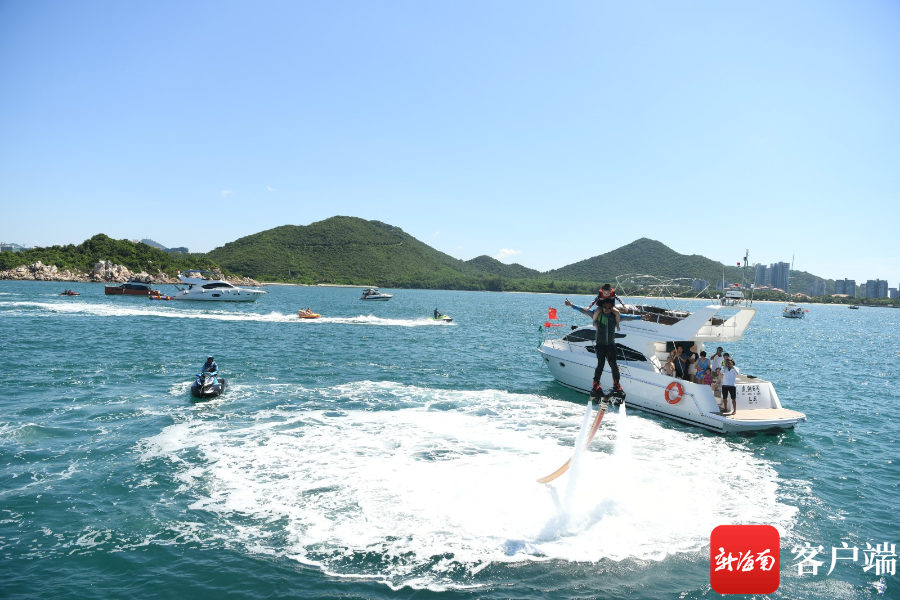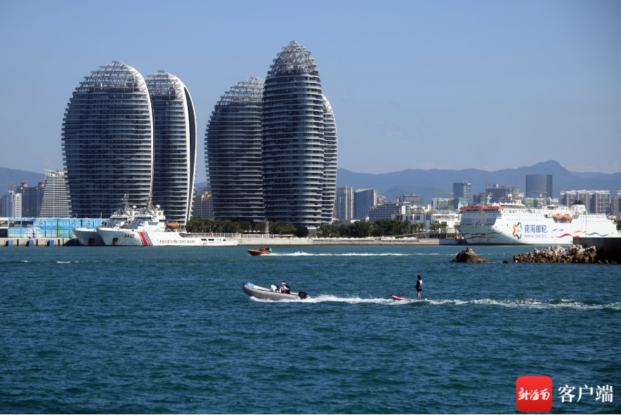 10月5日,記者從三亞游船旅游中心乘坐游艇近距離感受三亞玩海。無論是讓人尖叫不已的水上飛龍、摩托艇、香蕉船等水上娛樂項目,深潛、浮潛、潛水培訓等水下活動,還是乘風破浪的游艇帆船出?!齺営刑嗟挠瓮娣绞阶屇惚M享海洋魅力。
