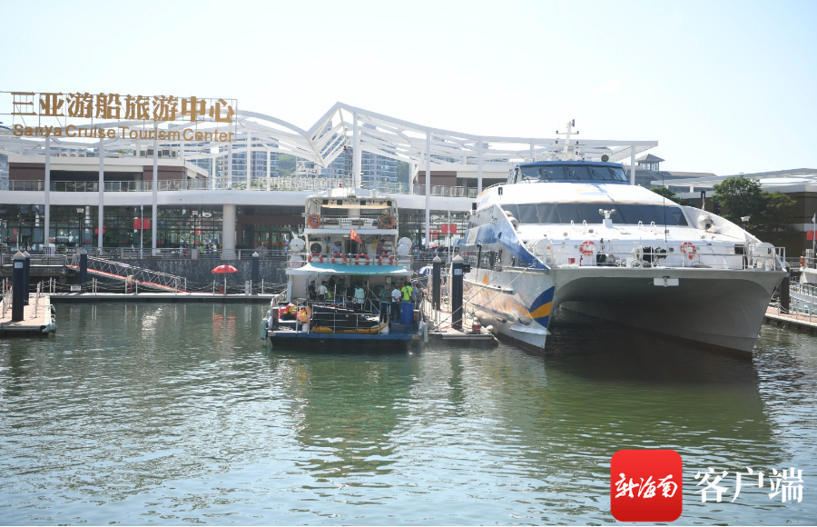 10月5日,游客在三亞游船旅游中心乘坐游船出海。記者 沙曉峰攝