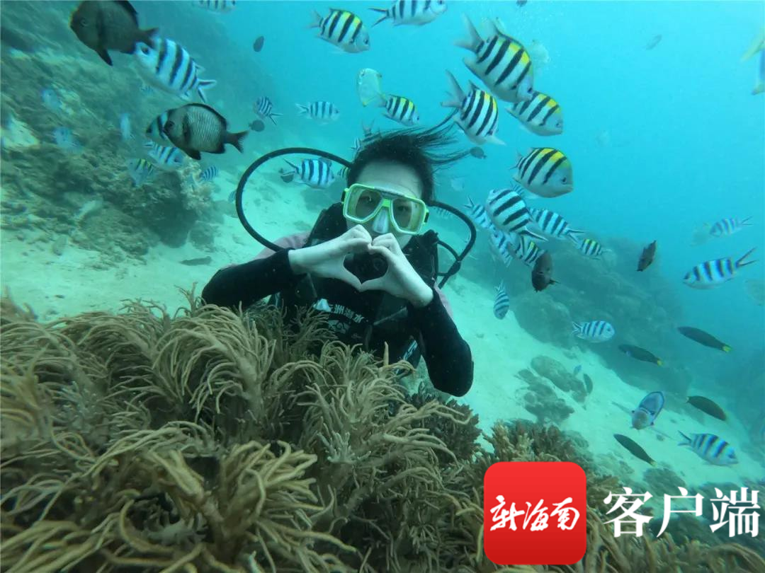 游客體驗蜈支洲島潛水產品。景區供圖