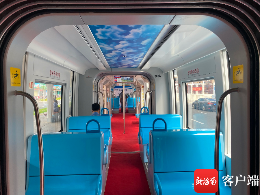 三亞有軌電車車內十分寬敞。記者 張宏波 攝