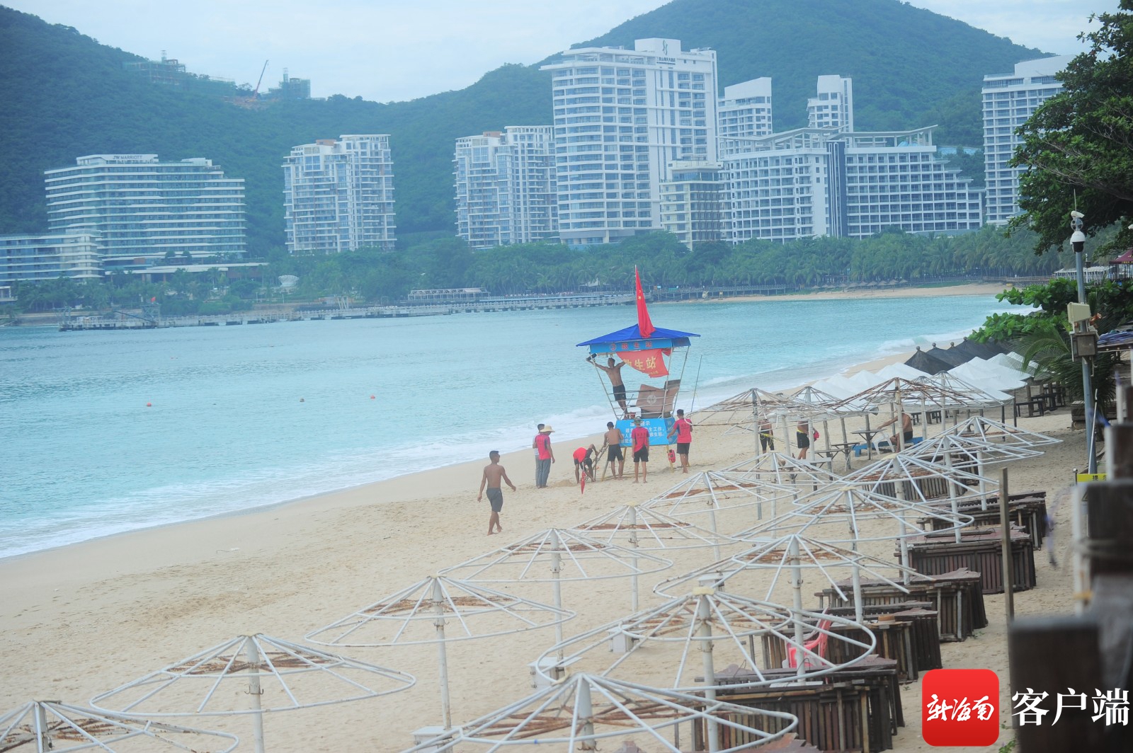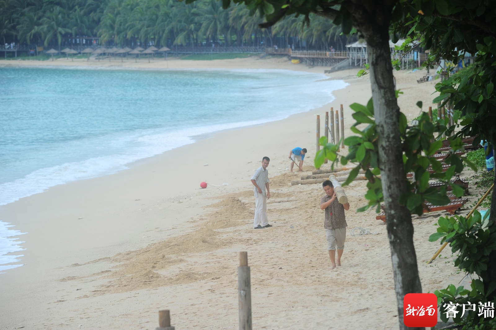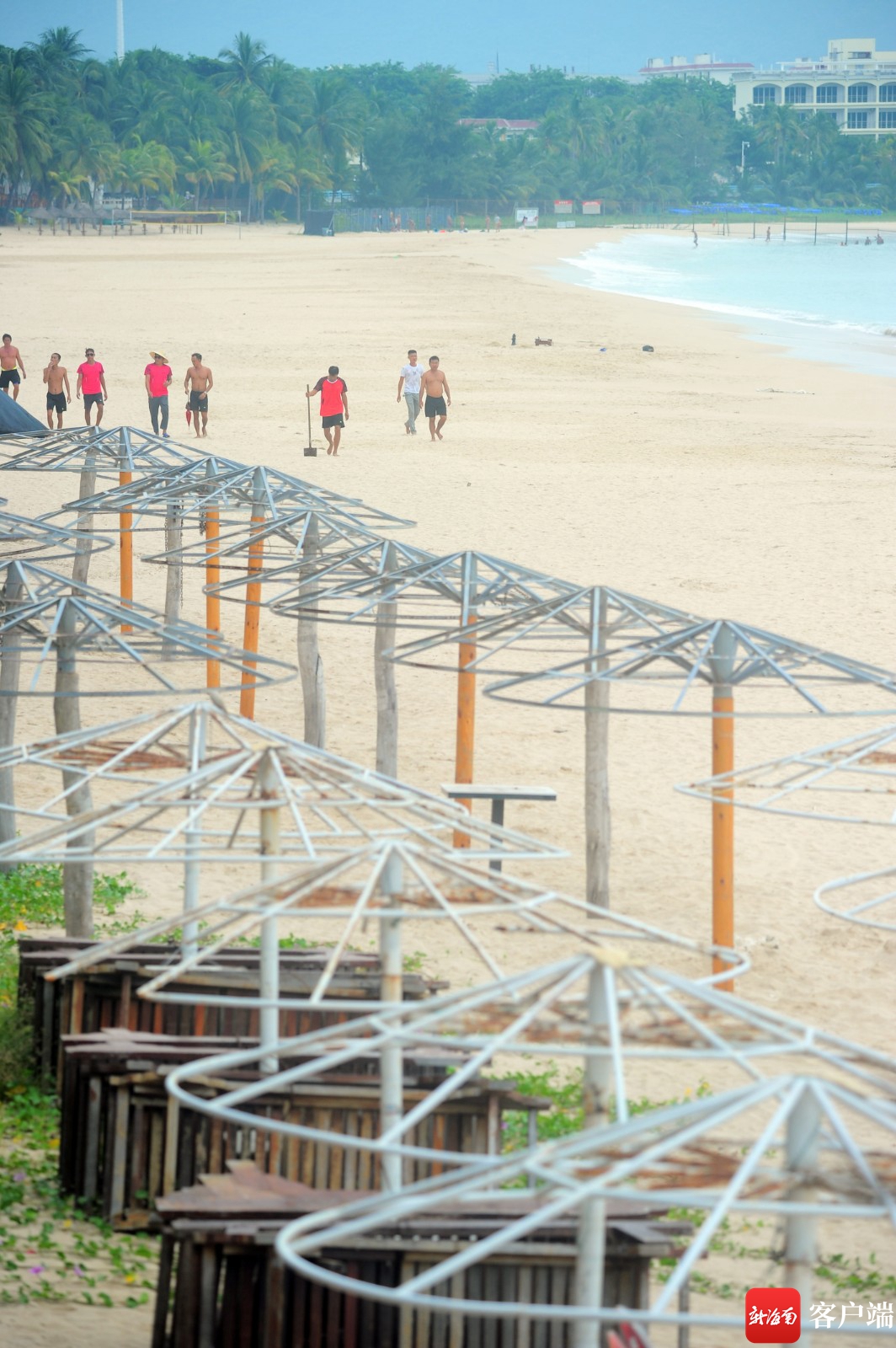10月13日,工作人員在大東海旅游區搬離相關設施。記者 沙曉峰 攝