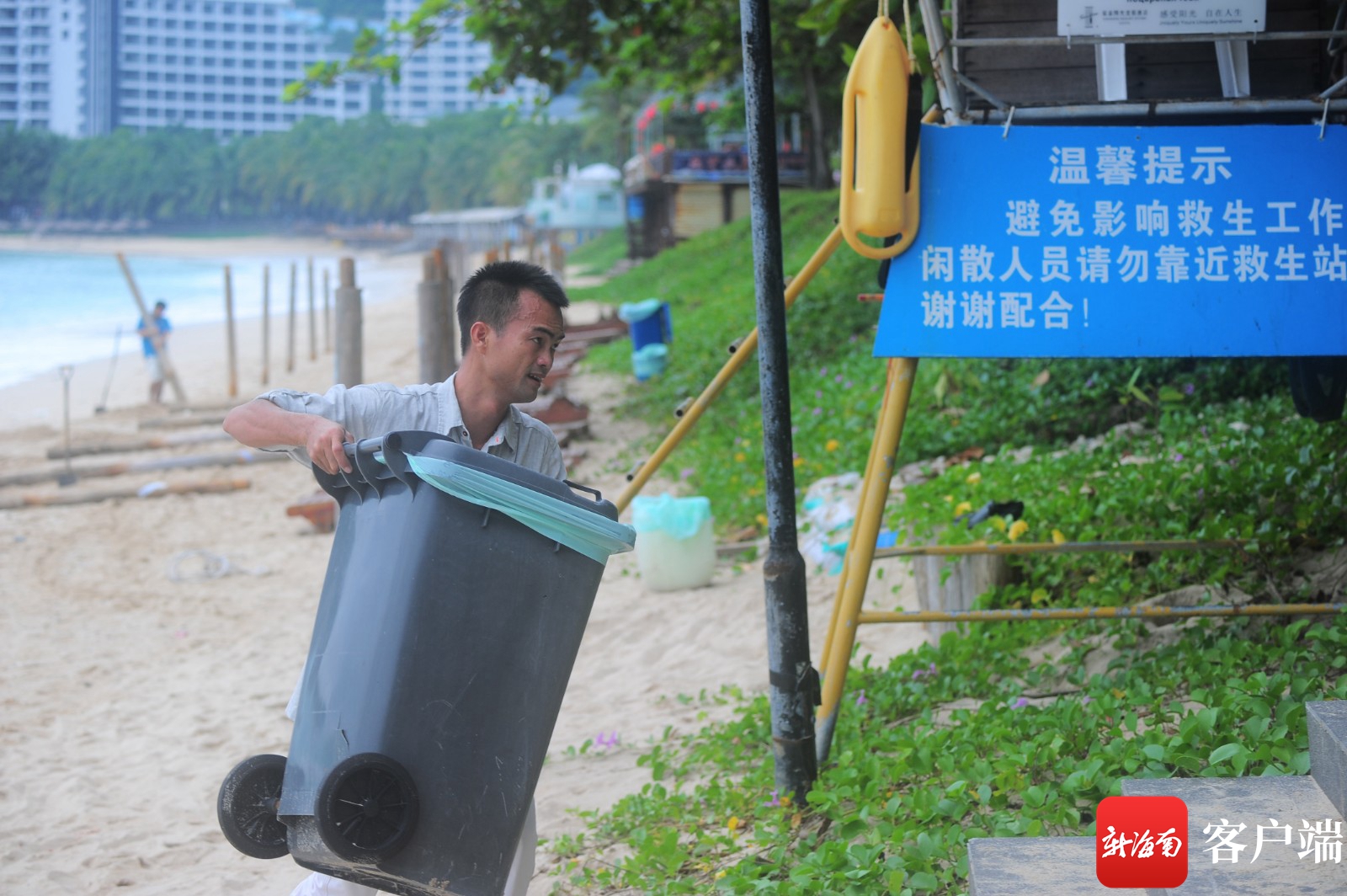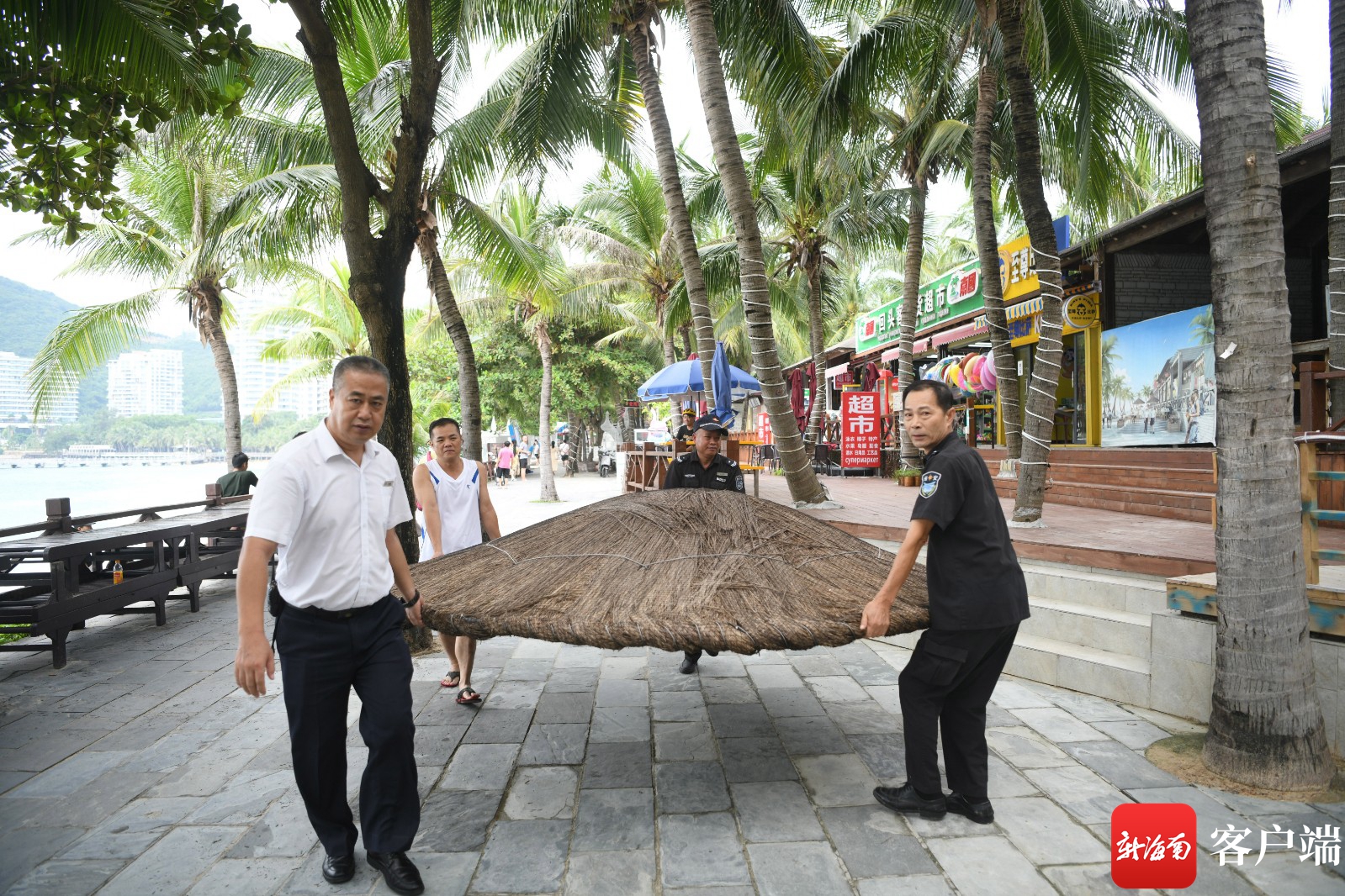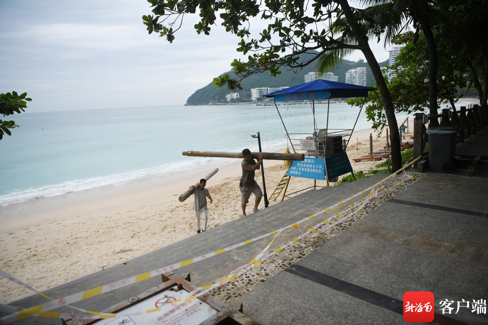 10月13日,工作人員在大東海旅游區搬離相關設施。記者 沙曉峰 攝