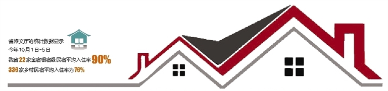 省旅文廳的統(tǒng)計數(shù)據(jù)顯示,10月1日-5日,我省22家金宿銀宿級民宿平均入住率90%,336家鄉(xiāng)村民宿平均入住率為76%。