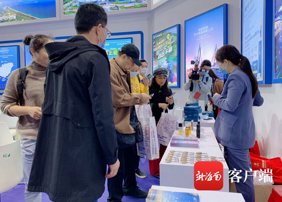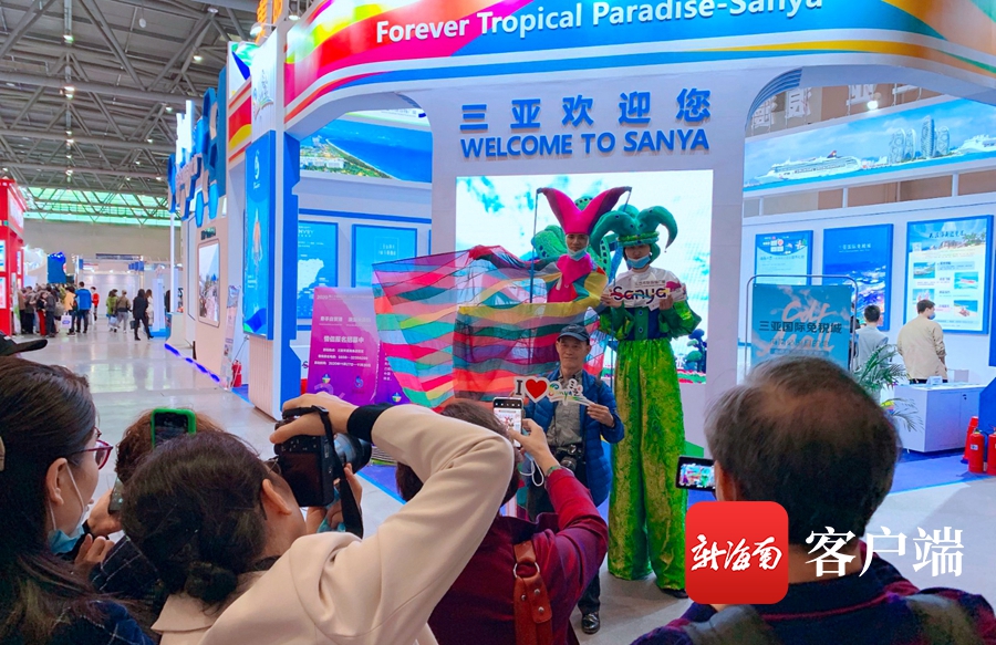 踩高蹺的海洋精靈手持三亞logo標識熱情迎客;藍、白、橙三色主調勾勒出陽光、大海、藍天的氣息;LED屏幕上播放著最新版旅游形象宣傳片,凸顯著三亞熱帶度假天堂特質;網紅直播間線上互動……步入規模為4萬平方米的博覽會主題展館,三亞展位頗為引人注目——三亞國際免稅城、三亞·亞特蘭蒂斯、天涯海角游覽區、蜈支洲島、檳榔谷、萬豪集團旗下品牌酒店、海上巴士、“城市禮物”海角之戀,涵蓋景區、酒店、綜合體、旅游文創的11家文旅企業展示著自我形象和特色產品,吸引了眾多山城市民游客和參展商家的造訪。
