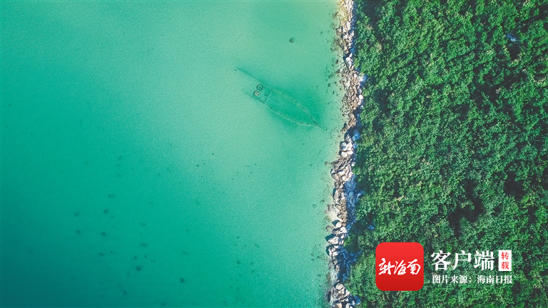 在海南萬寧,也有這樣一處“沉船灣”。萬寧大洲島南嶺,西南側(cè)的淺海中,一艘古沉船的輪廓若隱若現(xiàn),看起來像是一條褪去鱗片、沒有光澤的魚。讓人不禁好奇,它到底于何時、從何地遨游至此?