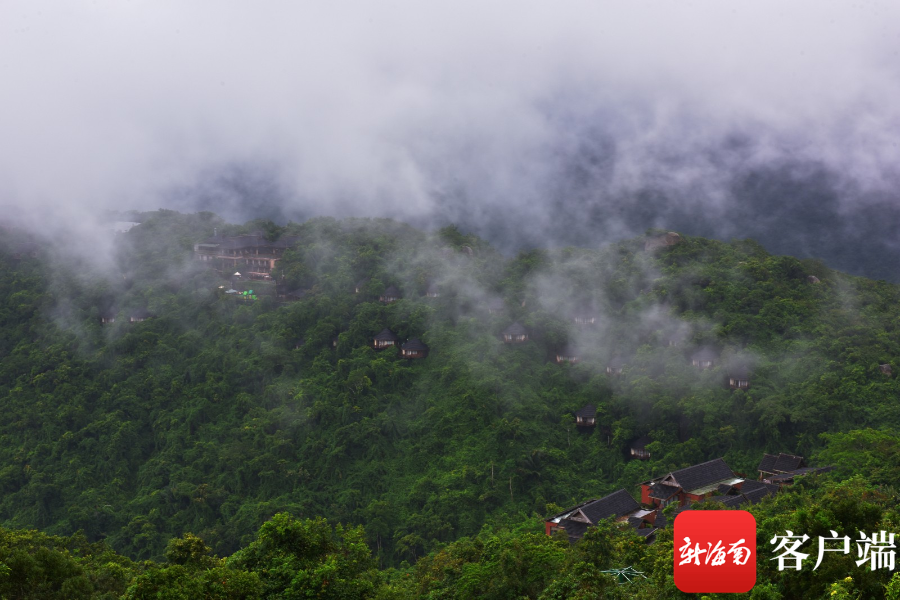 10月25日,風(fēng)雨過后的亞龍灣熱帶天堂山頂公園上云霧繚繞。通訊員 黃慶優(yōu) 攝