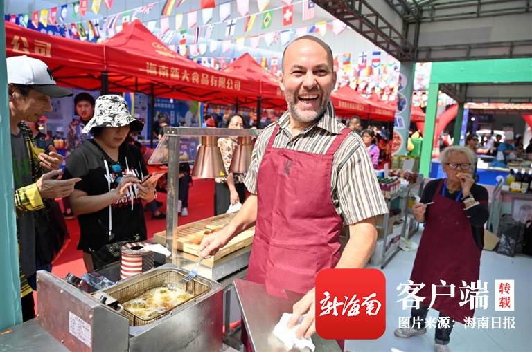 在2019年(第五屆)海南國際旅游美食博覽會上,來自意大利的參展嘉賓喜笑顏開。樂凱 攝