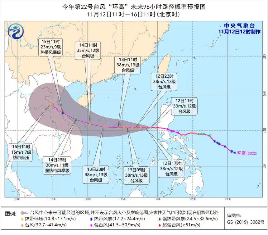 海南省氣象臺預計,“環高”將以每小時20公里左右的速度向偏西方向移動,即將移入南海東部海面,強度變化不大,13日~14日先后穿過中沙和西沙群島,然后從海南島南部海面經過,趨向越南中北部沿海。