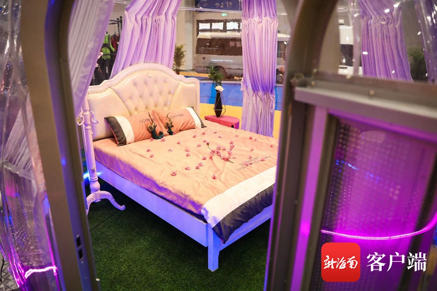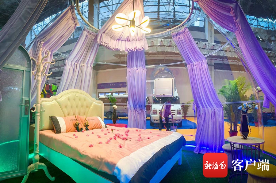 新海南客戶端、南海網、南國都市報11月20日消息(記者 任桐)主臥直徑4米,衛生間直徑2米,1.8米舒適大床……酒店配套一應俱全。這個就是11月20日亮相2020年海南國際旅游裝備博覽會的360度全透明星空房。其全透明的設計,較高的顏值,倍受參展觀眾關注。