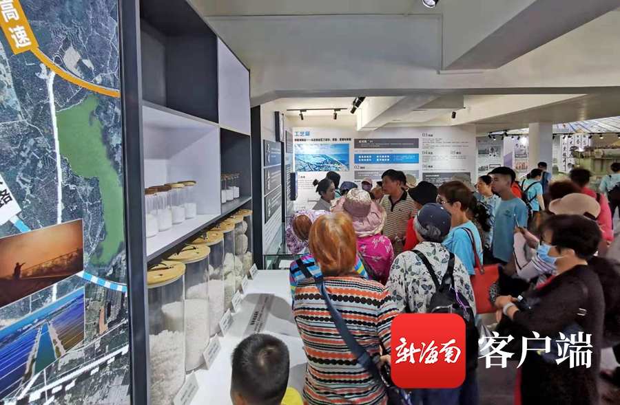 當(dāng)天,游客們一同走進樂東,參觀鹽文化館和體驗粗鹽、細鹽生產(chǎn)景觀、收鹽作業(yè)景觀 ,“重走鹽工路”等體驗活動,感受鶯歌海鹽場精神。工作人員介紹,遇到漲潮時,海水從納潮口閘流入儲水湖,通過揚水站,再流過蒸發(fā)池,鹽濃度逐級升高,成了鹵水。隨后,進入結(jié)晶區(qū)開始結(jié)晶成鹽。樂東除了盛產(chǎn)優(yōu)質(zhì)鹽外,鹽田還有別樣的風(fēng)景,一望無垠的銀白色鹽海,渠道縱橫有序,銀光閃閃,景象十分美麗。