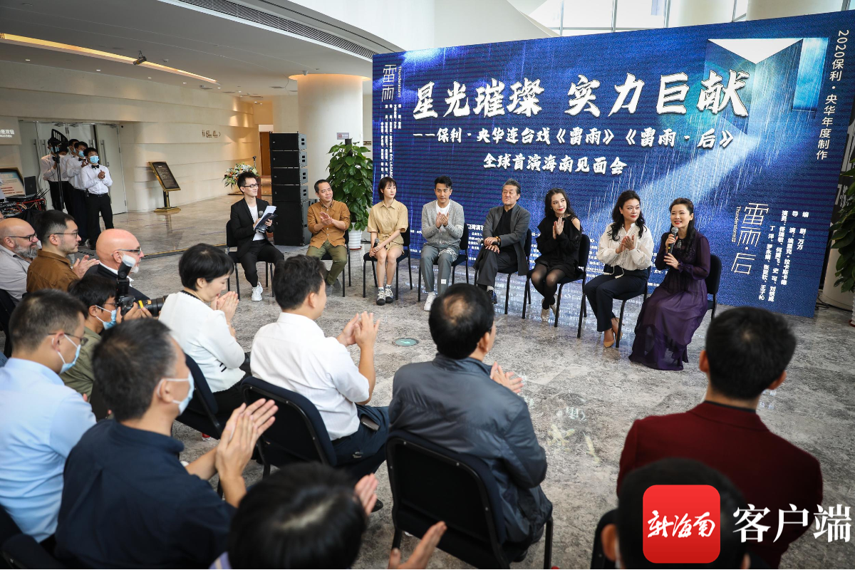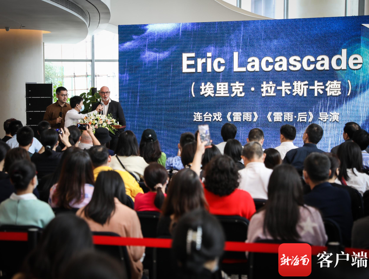 新海南客戶端、南海網、南國都市報11月26日消息(記者姚皓)11月26日,我國家喻戶曉的劇目《雷雨》《雷雨·后》全球首演海南見面會在海口灣演藝中心舉行。期間,該劇導演、法國著名戲劇導演埃里克·拉卡斯卡德,監制、著名戲劇制作人王可然,主演劉愷威、何賽飛、史可等亮相現場與粉絲親切互動。