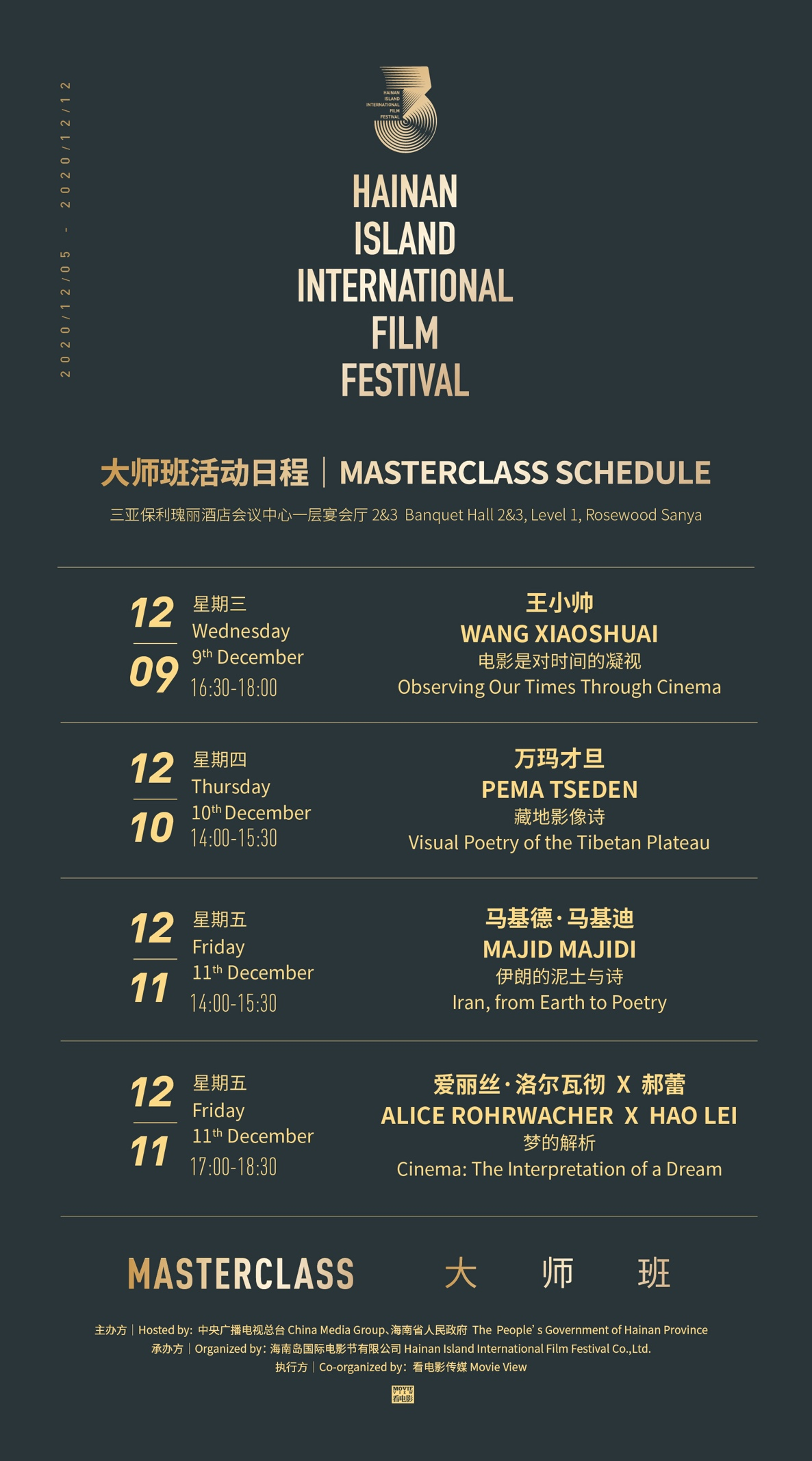 新海南客戶端、南海網、南國都市報12月3日消息(記者 譚琦 孫學新)12月3日,記者從第三屆海南島國際電影節組委會獲悉,作為電影節里與觀眾最親近的活動之一,大師班將迎來中國內地導演、編劇王小帥,中國內地導演、編劇萬瑪才旦,伊朗導演馬基德·馬基迪,意大利編劇、導演愛麗絲·洛爾瓦徹,以及中國內地演員郝蕾等五位重磅嘉賓,分別以線下和線上的方式,與數位優秀青年導演以及現場觀眾進行近距離接觸,分享創作心得。