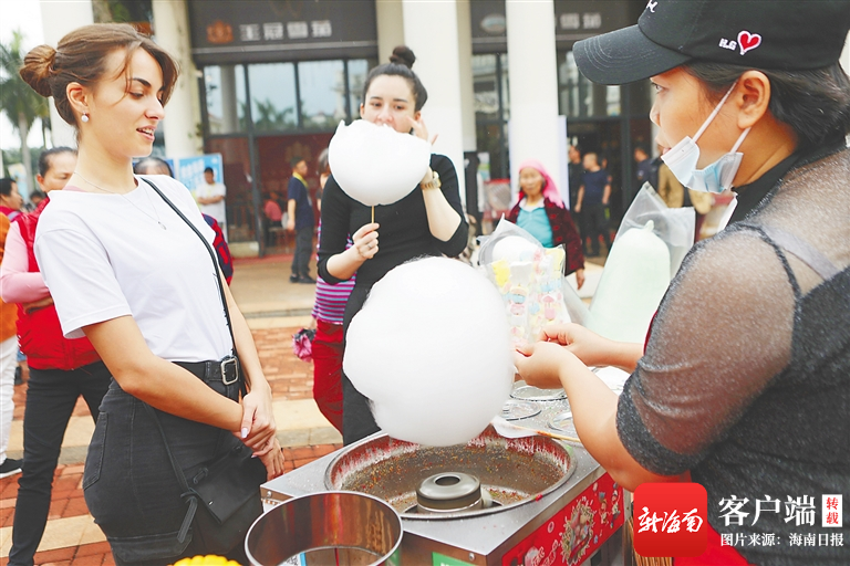 儋州特色旅游文化市集活動上,游客在購買美食。