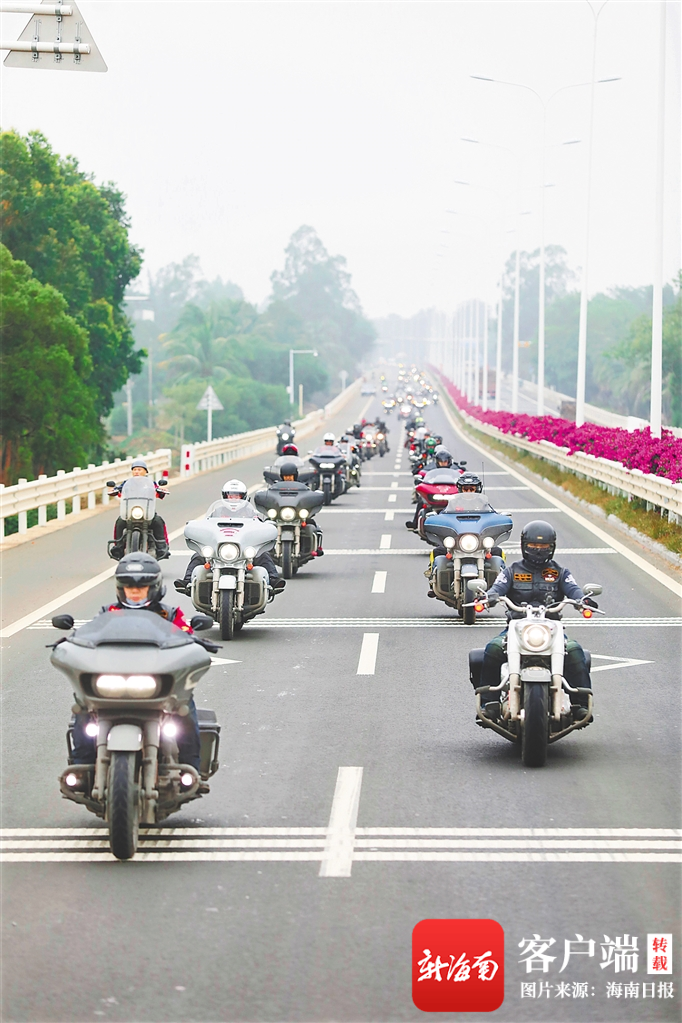 12月12日,百余名機車手在儋州參加“儋州有‘茄’,哈雷出行”活動。