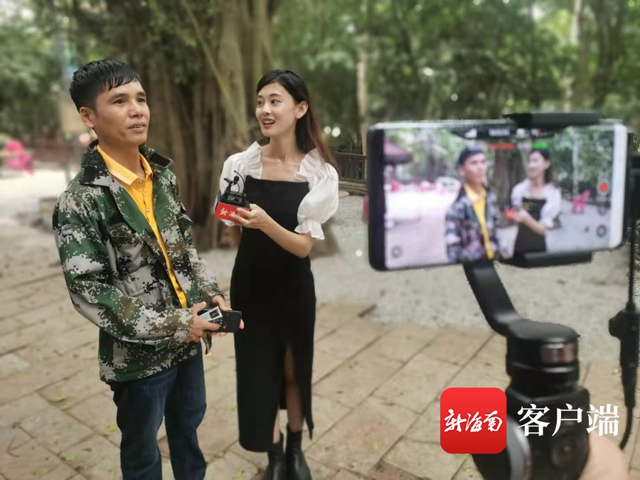 海南“網紅”導游檳榔小吳正在直播。記者 李昊 攝