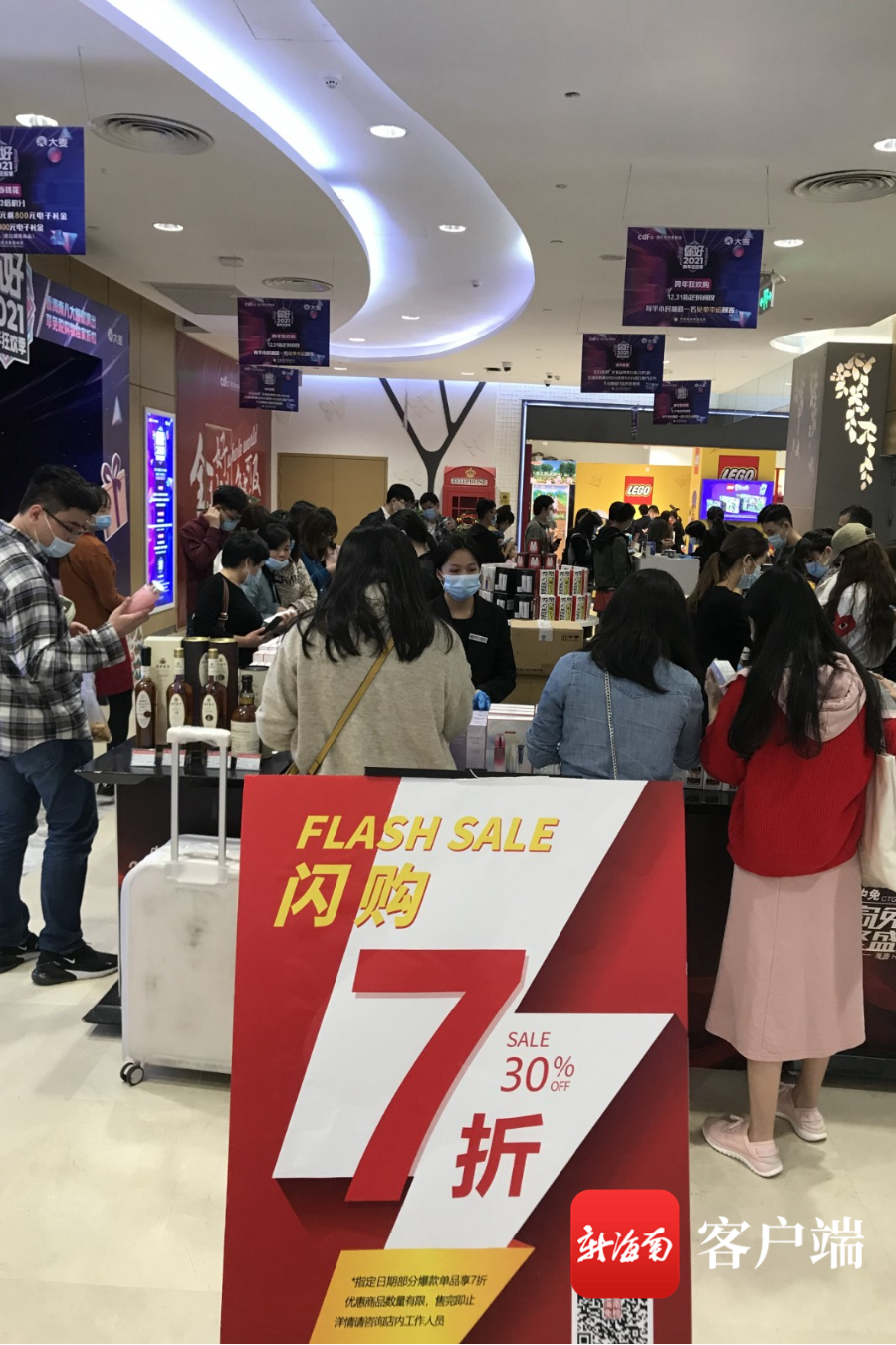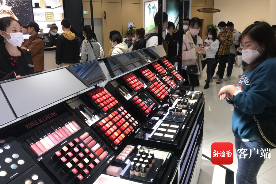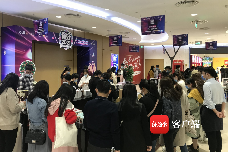 新海南客戶端、南海網、南國都市報12月28日消息(記者 陳衛東)2020年即將過去,海口商家紛紛推出跨年促銷活動,12月27日,記者在海口市區日月廣場免稅店看到,店內人氣火爆,前來購物的市民游客在不少柜臺前排起了長隊。
