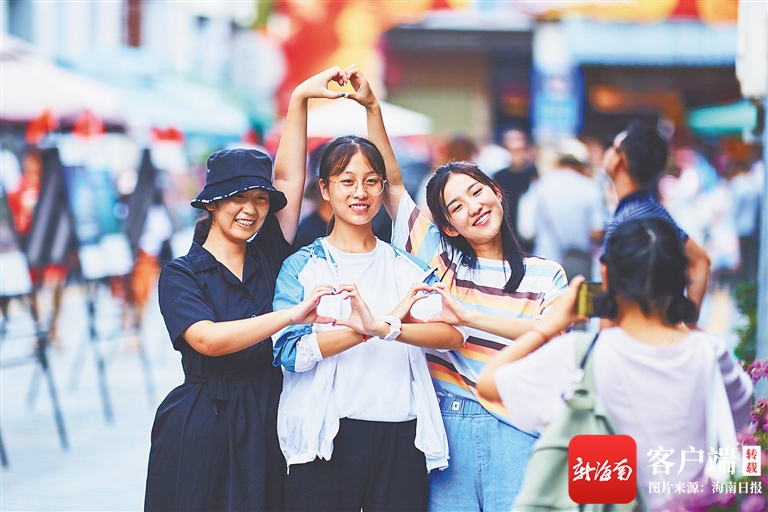 游客在海口騎樓老街留影。海南日?qǐng)?bào)記者 封爍 攝