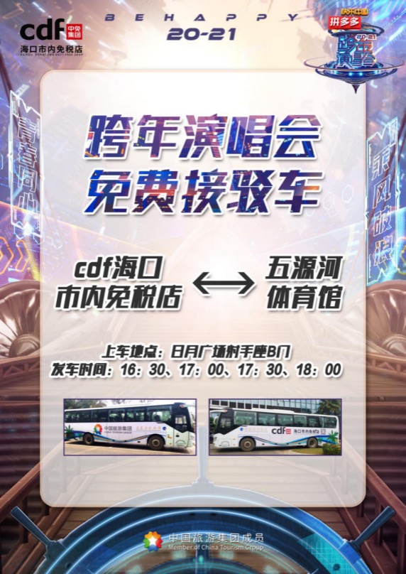 新海南客戶端、南海網、南國都市報12月29日消息(記者蘇靚)臨近新年,中國旅游集團旗下的cdf中免集團與湖南衛視跨年演唱會推出系列優惠活動,包括演出門票免稅粉絲免費領、百萬現金券大派送、跨年專車免費接送、萬元現金券一人享、香化爆款6.5-8折等福利。