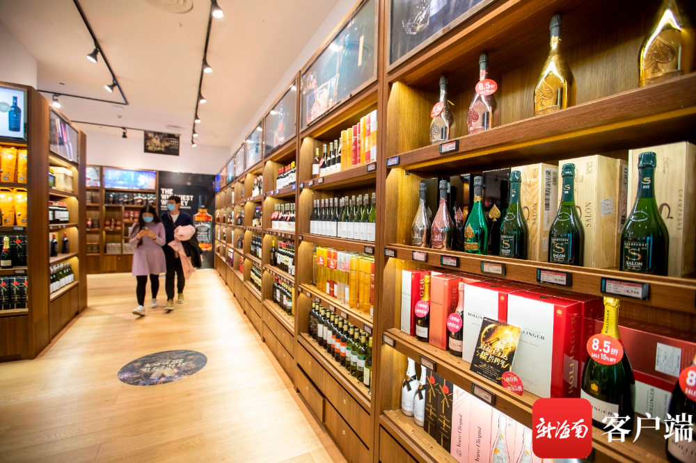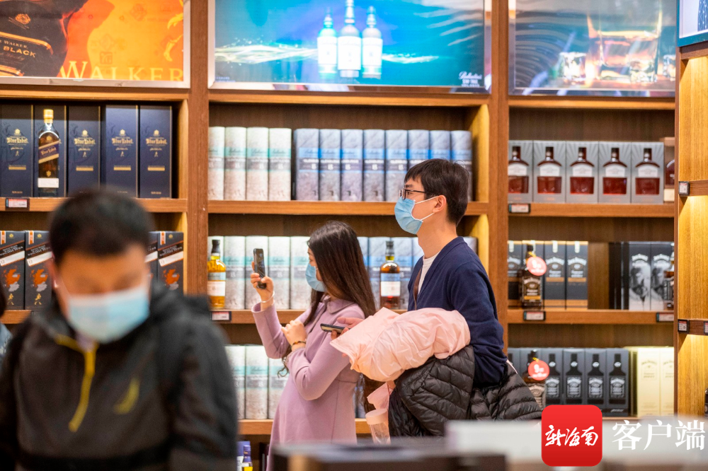 市民游客在免稅店內選購酒水類免稅品。記者 劉洋 攝