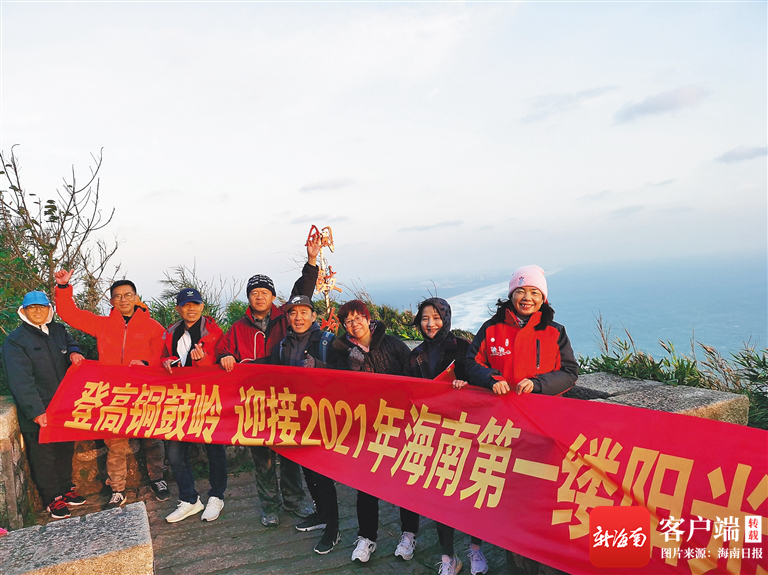 1月1日清晨,市民游客登上文昌銅鼓嶺,迎接海南島新年第一縷陽光。通訊員 薛斌 攝