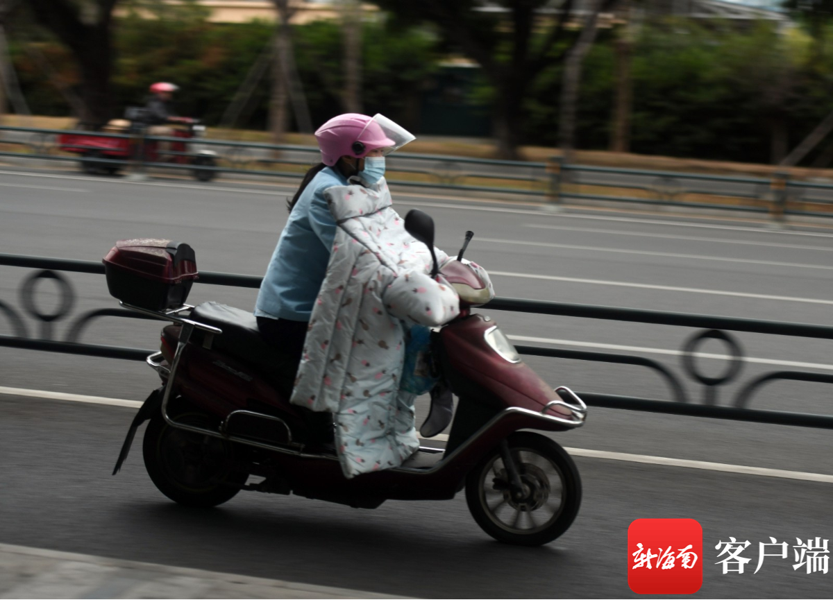 騎行的市民套上羽絨服。記者 沙曉峰 攝