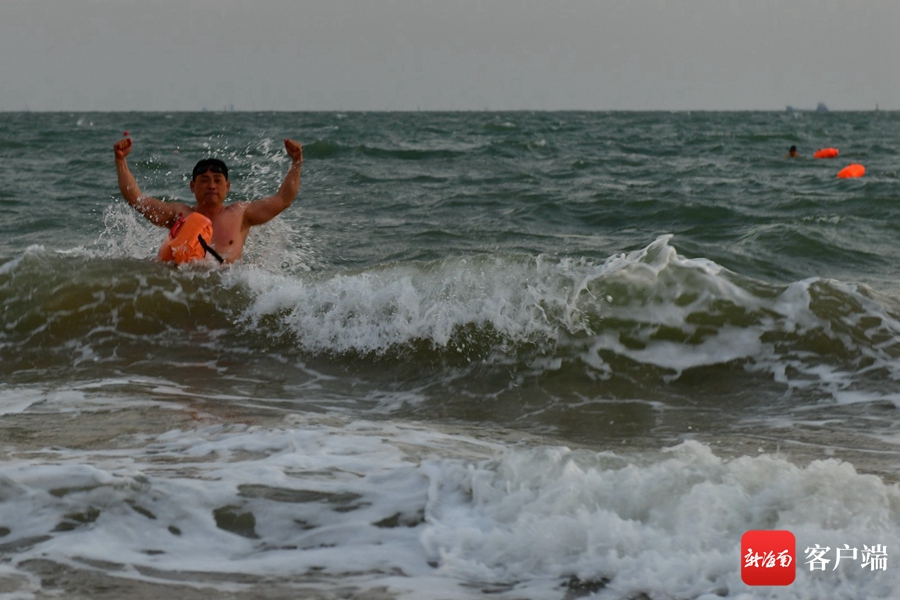 1月12日,海口溫度依然很低,海邊風大浪高,感覺更冷。早上7點,十多名游泳愛好者相約在西秀海灘體驗冬泳,他們在瑟瑟寒風里換上泳裝,簡單熱身后,撲向大海。