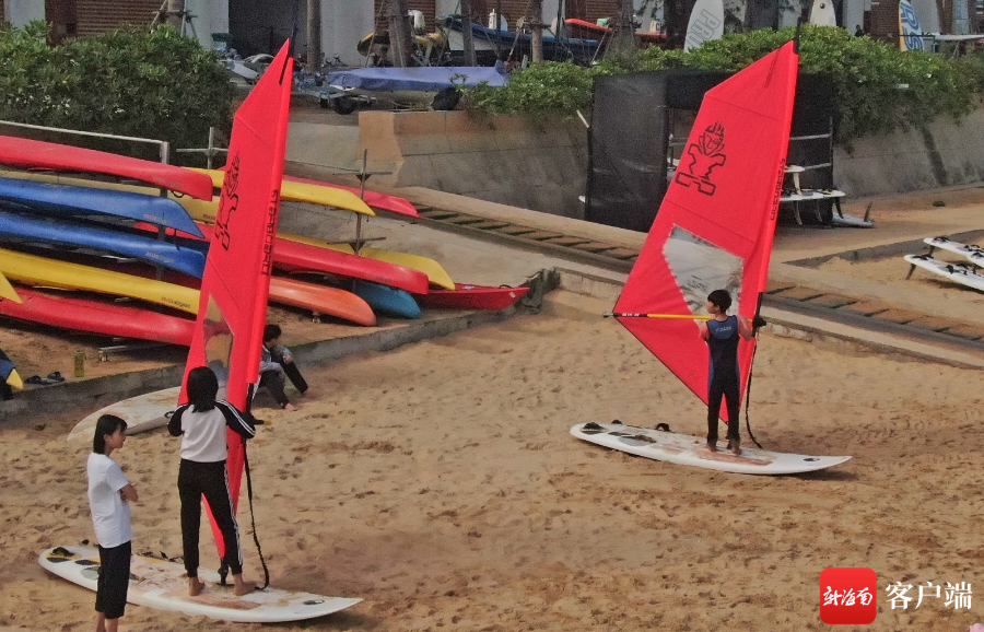 人們正在岸邊學(xué)習(xí)帆板動(dòng)作要領(lǐng)。記者 汪承賢攝