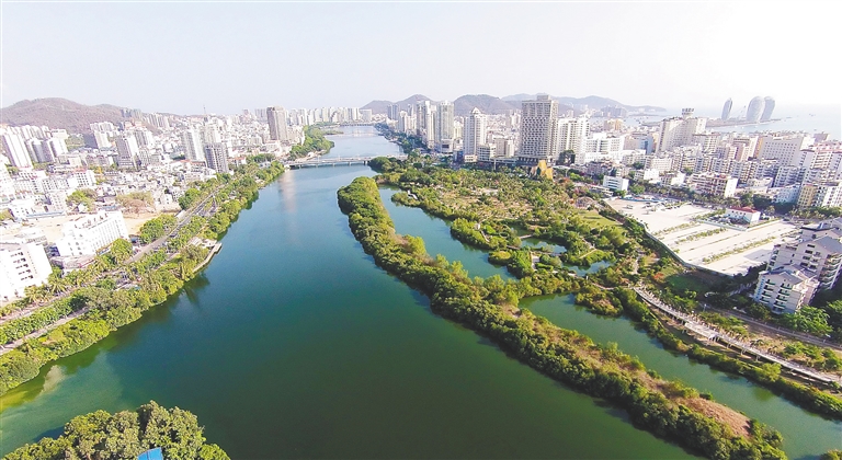 三亞河是三亞市的內河,也是母親河。它滋養了沿岸風物,養育了一方人物,如今三亞河上紅樹林枝繁葉茂、白鷺翩翩,這條河流改善和提升了人居環境,三亞也成為一座因水而靈動的城市。2016年12月,“海南三亞東河國家濕地公園”獲批國家濕地公園(試點)。為了全方位地進行保護,該市申報將三亞西河也納入保護范圍,2017年12月,國家林業局(現國家林業和草原局)同意在此基礎上擴大面積和變更名稱,即建設“海南三亞河國家濕地公園”,全流域保護總面積達到1843.24公頃。