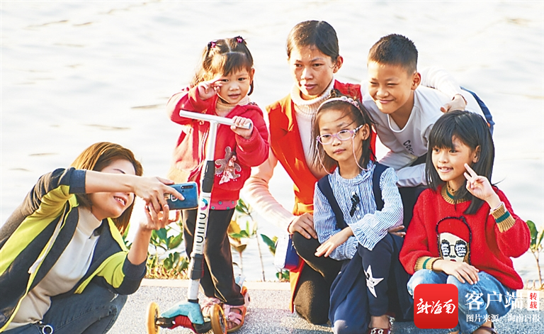 2月4日,游客來到海口紅城湖濕地公園愜意“打卡”。海南日報記者 封爍 攝