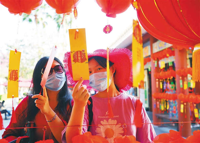 2月12日,游客在三亞南山文化旅游區猜燈謎,感受民俗文化。(海南日報記者 武威 特約記者 陳文武 圖/文)