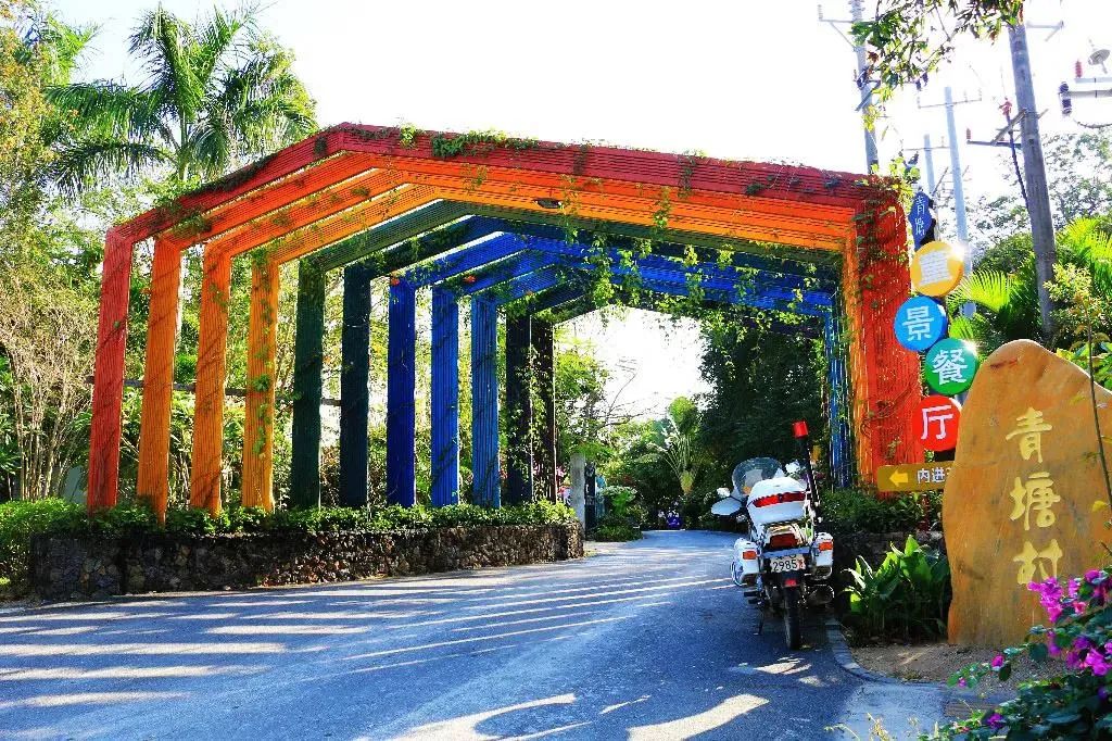 初入青塘村,仿佛置身于充滿童趣的世界。這里有不同風(fēng)格的民居和咖啡吧,兒童游樂(lè)場(chǎng)、椰林、田野、荷塘等讓人應(yīng)接不暇,氣氛安靜又祥和。